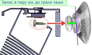 "смазав” парой капель силикона-герметика чаши присосок, установить